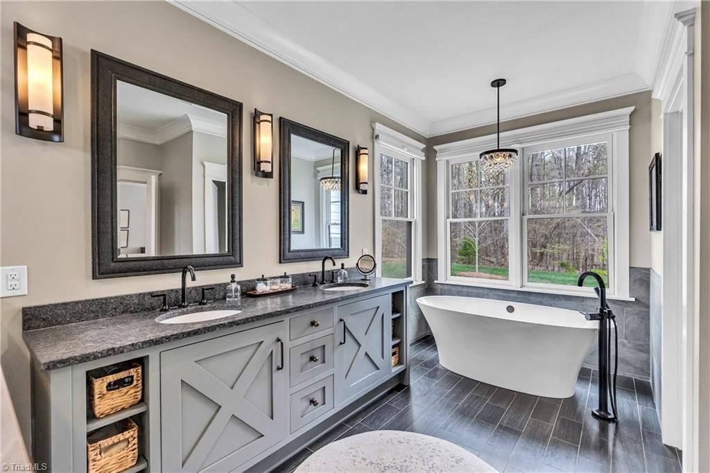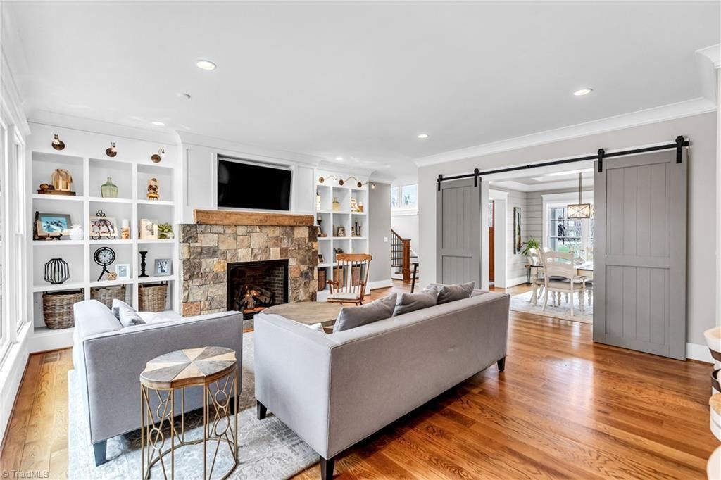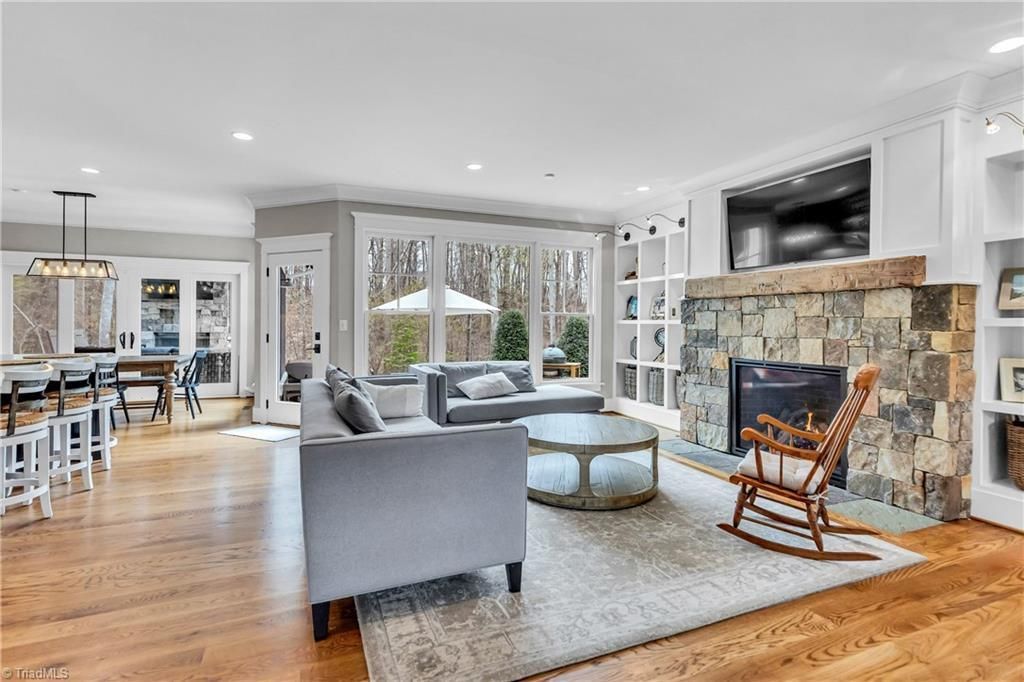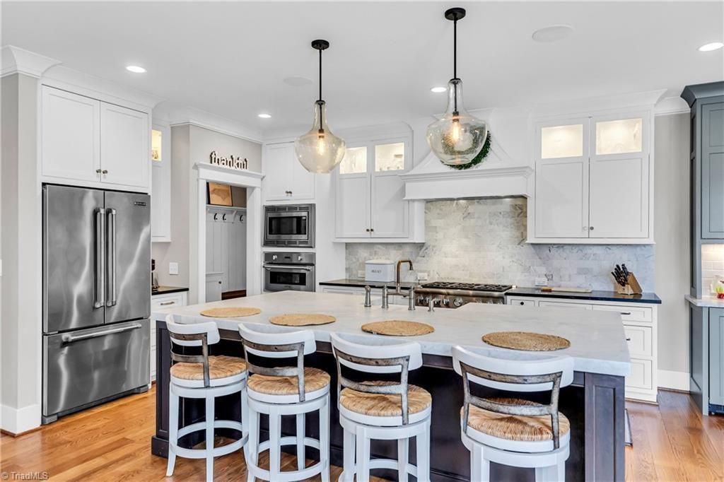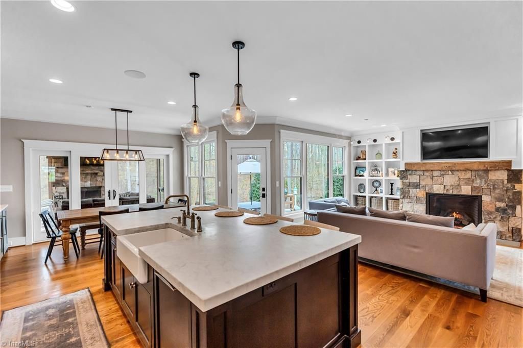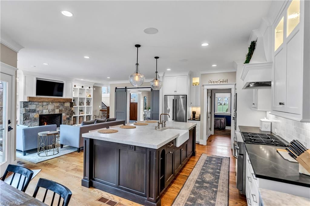 Step outside to an incredible screened-in back porch, anchored by a lg. stone natural wood-burning fireplace, ideal for yr-round enjoyment. The two-tiered stone-paved patio, complete w/ a built-in outdoor fireplace, offers ample space to grill and host family and friends, blending indoor-outdoor living in timeless style. This stunning home seamlessly combines modern elegance w/ farmhouse warmth, making it a rare gem in Brookberry Farm.